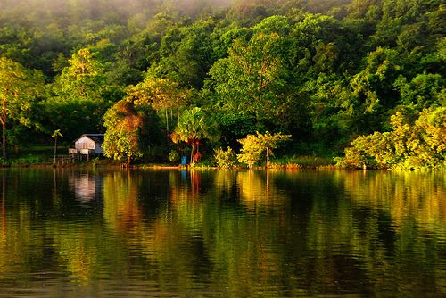En effet, dans le Rio Tapajo près de Santarèm (Brésil), dans les cours d’eau on trouve des parties larges et lentes de rivières à l’eau claire.