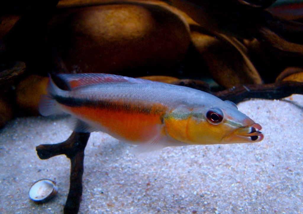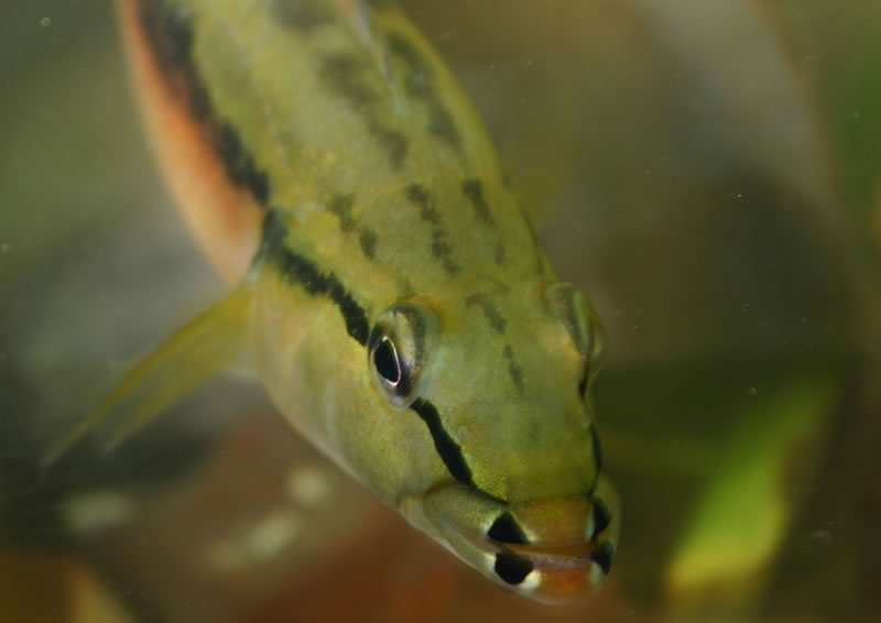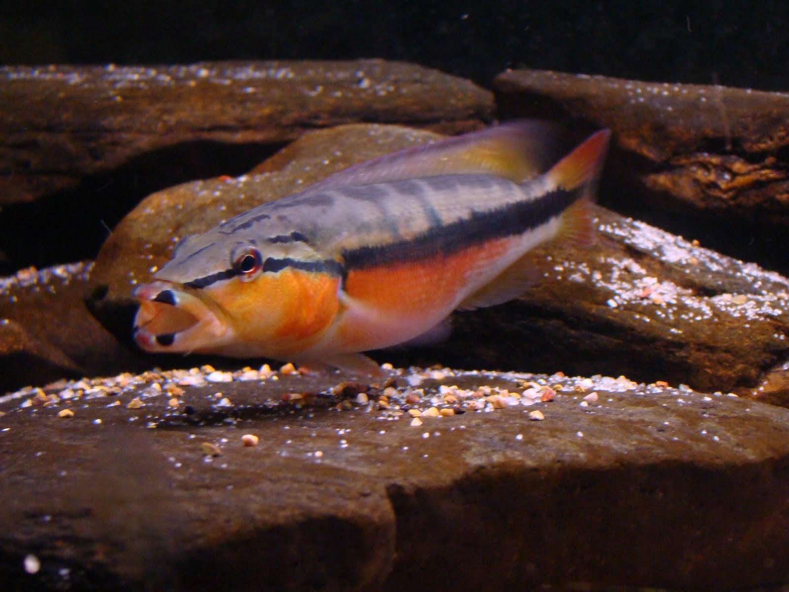 Dans un bac, la température de l’eau est constante tout au long de l’année, et conséquence, Crenicichla celidochilus et d’autres les espèces ne montrent souvent pas leur couleurs orange.