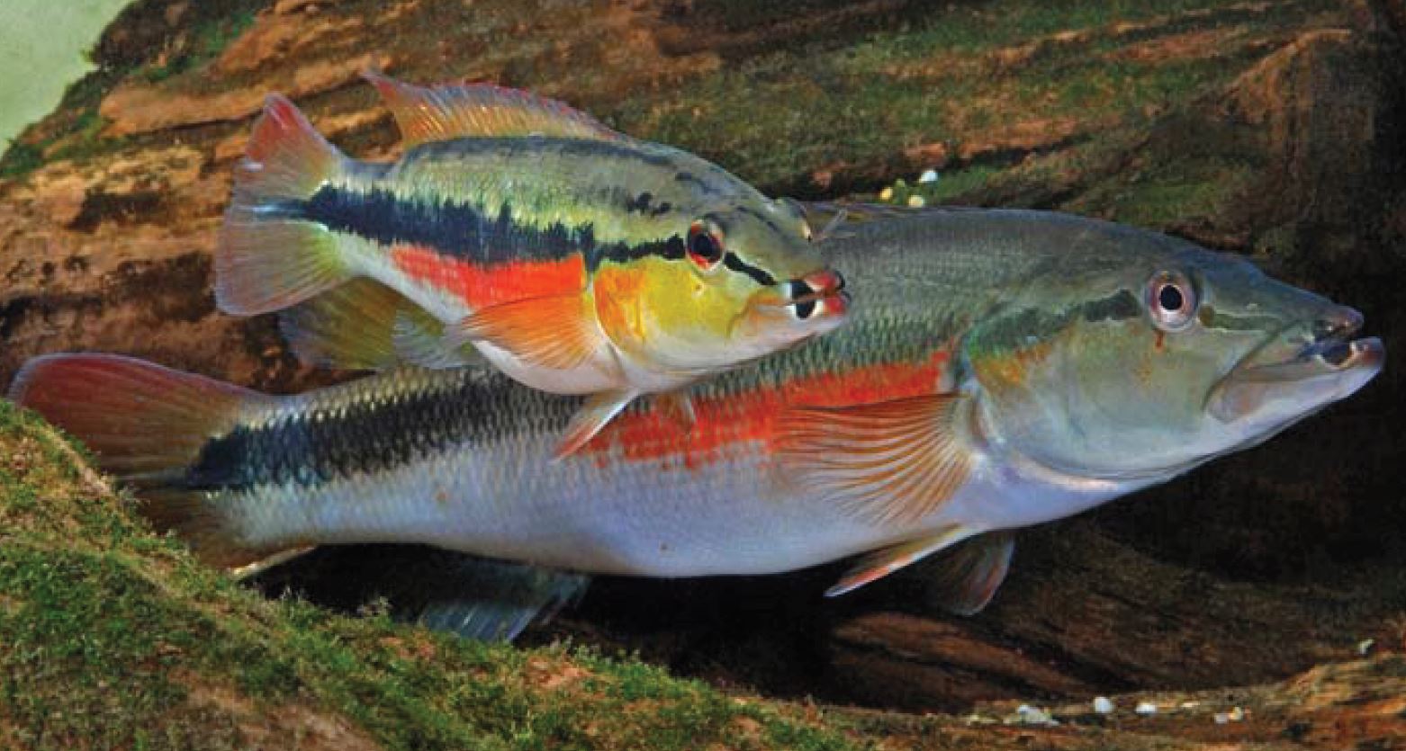 Contrairement aux Crenicichla celidochilus, la femelle et à la fois le mâle Crenicichla minuano ont montré une drastique augmentation de l’intensité de leur coloration rouge.