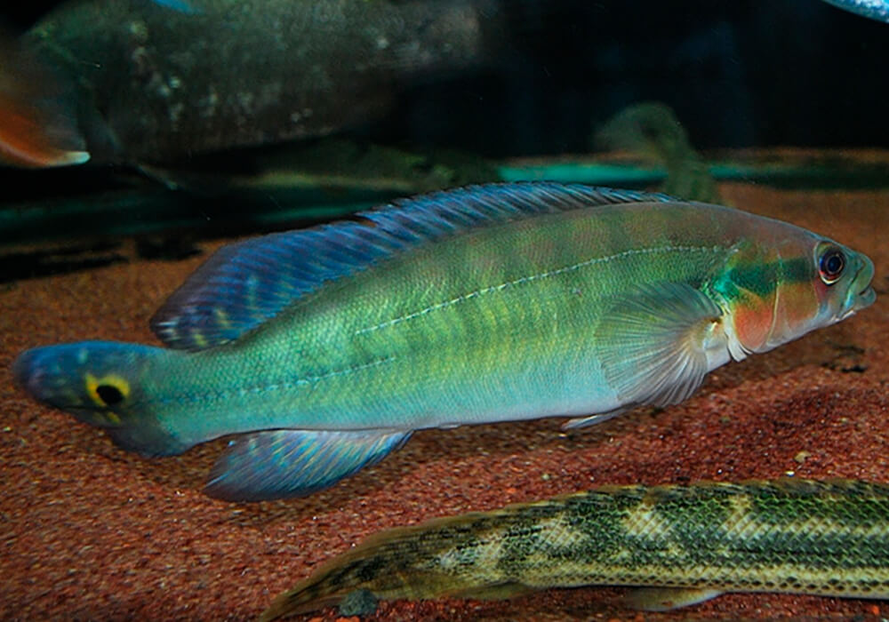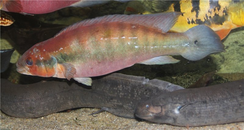 - Le motif de la nageoire caudale, qui correspond étonnamment aux céphalopodes de Cichlidés du genre Cichla.