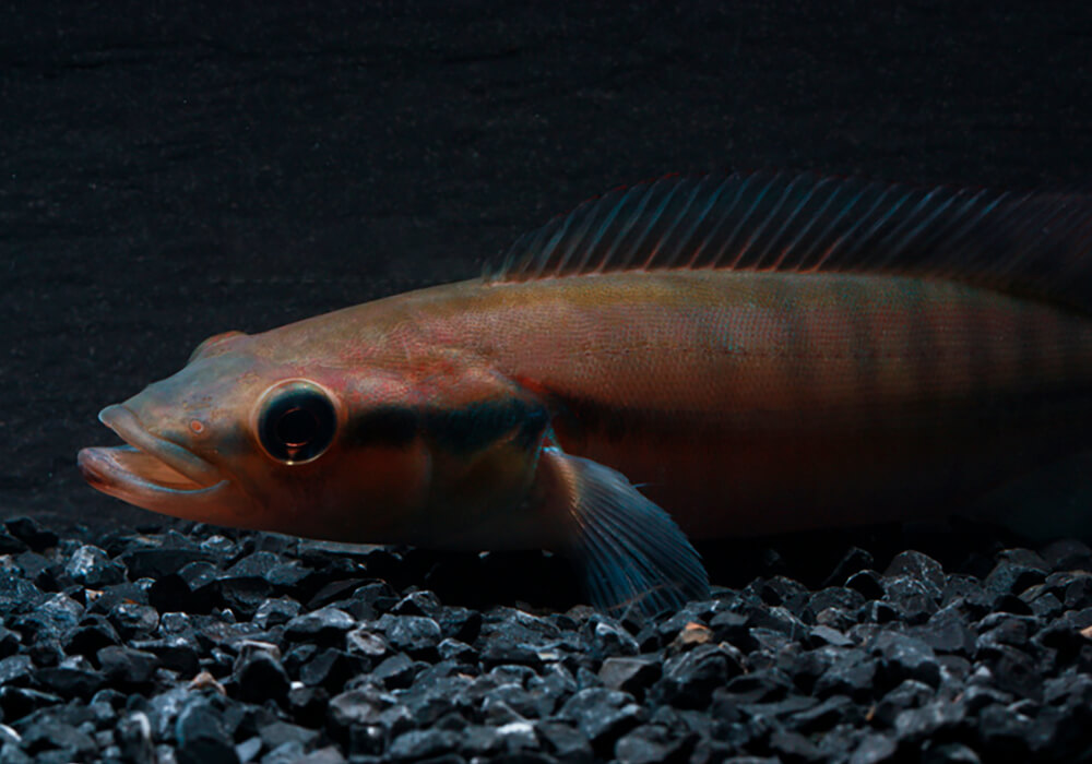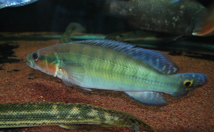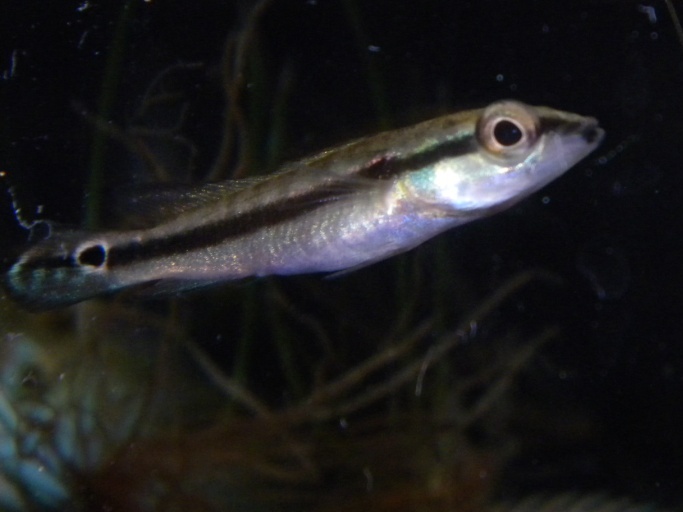 - L’espèce a également un museau relativement long comparé à de nombreuses autres espèces de Crenicichla à petite échelle, la narine étant bien retirée du bord antérieur du museau (cf. Crenicichla johanna).