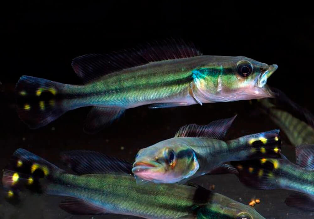 Les deux parents Crenicichla cincta s’occuperont de leur nombreuse progéniture issue des pontes et cela pendant plusieurs semaines.