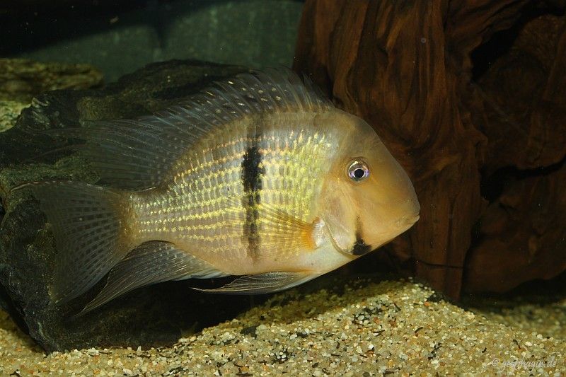 C’est un cichlidé à croissance moyenne, trouvé dans les eaux douces et acides de la Guyane et du Suriname, surnommé le « cichlidé Bandit » ou « Geayi Cichlid » et qui doit son nom à la bande distincte couvrant les deux yeux.