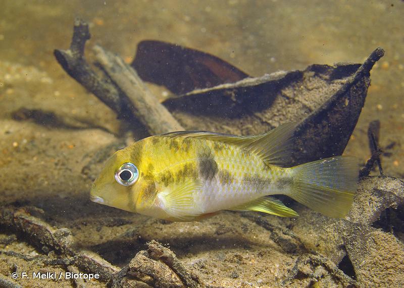 Guianacara geayi préfère les eaux calmes des ruisseaux intérieurs où cette espèce peut être très abondante (Réf. 27188 ).