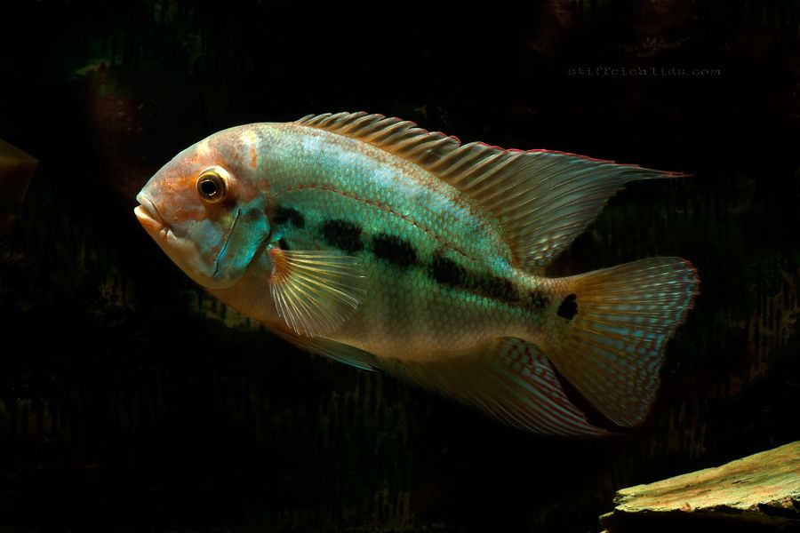 Hoplarchus psittacus, anciennement Cichlasoma psitticum (Kullander, 1983), est un magnifique poisson vert irisé aux yeux rouge vif convoité par les amateurs avancés de cichlidés du Nouveau Monde.