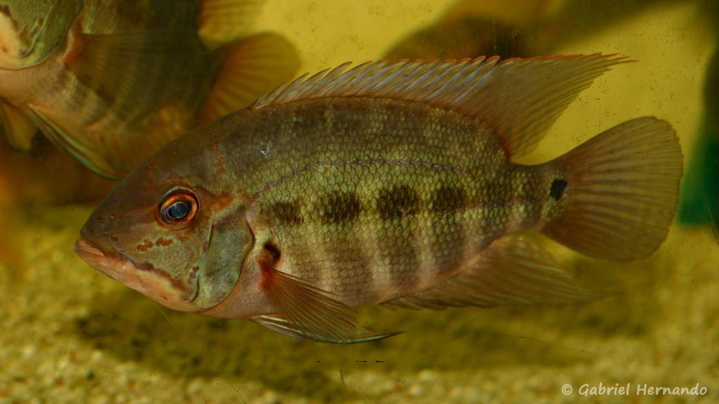 Ce cichlidé a une morsure puissante et peut être agressif, il faut donc faire attention lors du choix des camarades de l’aquarium.