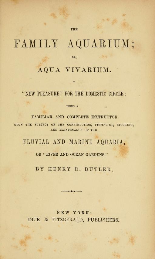 En 1858, apparaît aux Etats-Unis le premier livre traitant uniquement de l’aquariophilie : « The Family Aquarium » de Henry D. BUTLER.