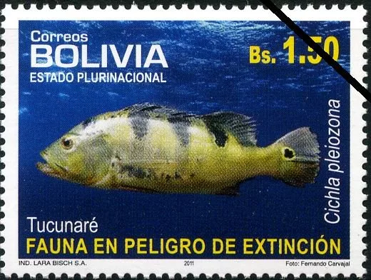 [6] Colossoma macropomum est une espèce de poissons américains de la famille des Serrasalmidae communément appelée « pacu » (comme d’autres espèces), « cachama » ou encore « tambaqui » et qui vit dans le bassin de l’Orénoque.
