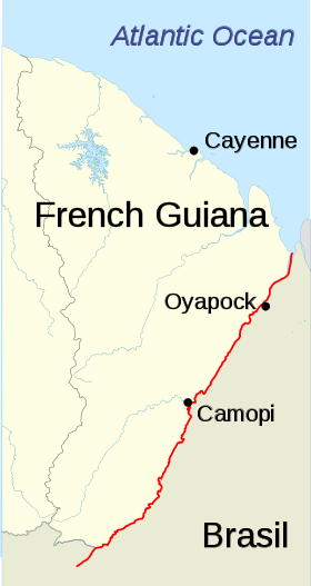 REMARQUE : L’Oyapock, anciennement Wiapoco, en néerlandais et en portugais Oiapoque, est un fleuve qui marque la frontière entre le Brésil et la France en Guyane.