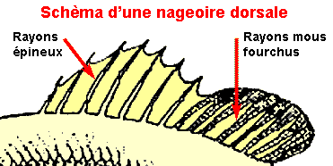 La nageoire dorsale joue un rôle de quille (maintien de l’équilibre) ; elle est constituée en avant de rayon épineux et en arrière de rayons mous, une seconde nageoire dorsale, en arrière de la première, constituée de rayons mous est présente chez de nombreuses espèces.