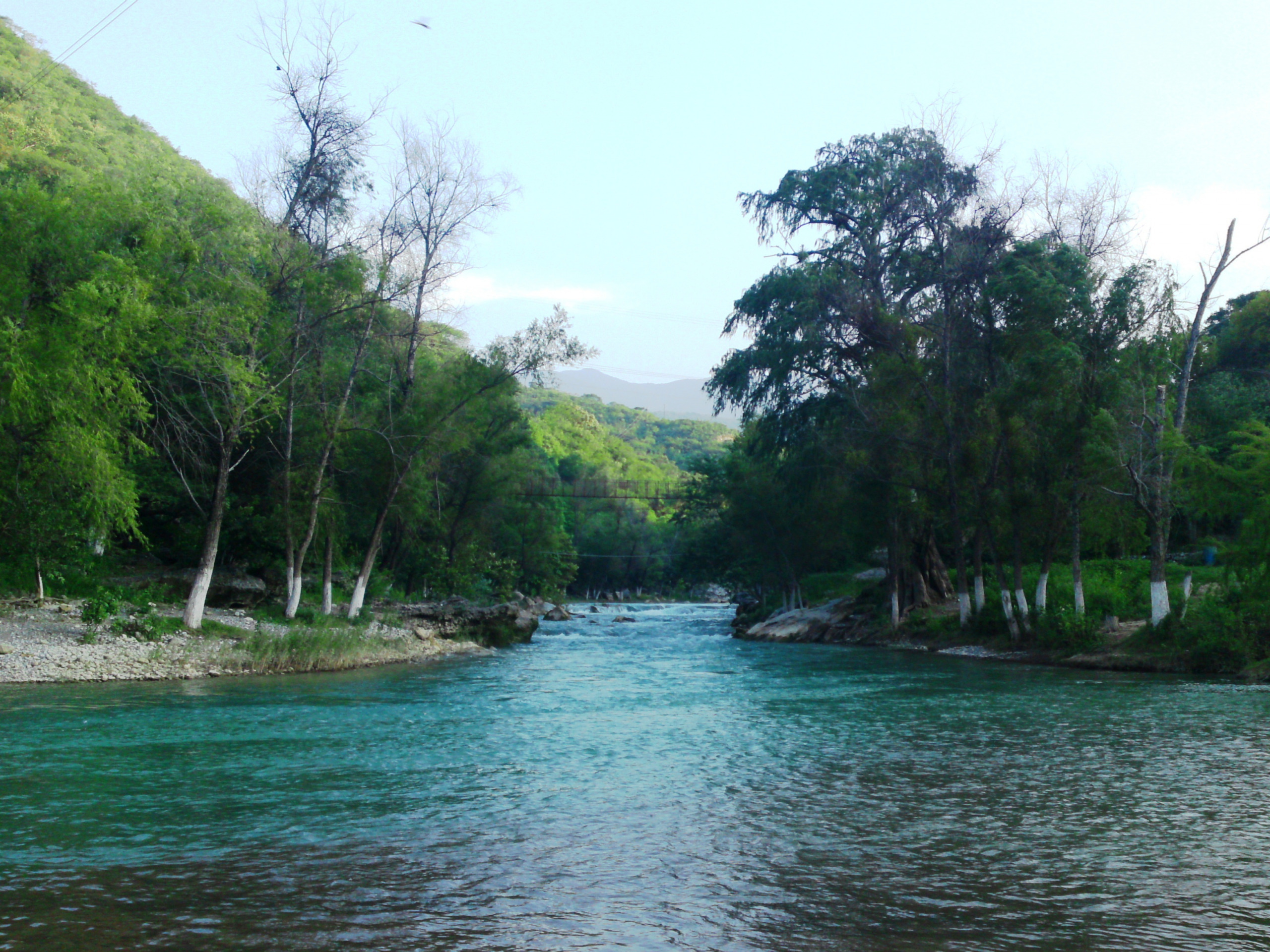 Les Rios Verde et Santa María, à partir d’une altitude de 1000 mètres au-dessus du niveau de la mer jusqu’à leur point de fusion (99°14′,21°38’N.LAT.), et en descendant la rivière Tampaón résultante jusqu’à une barrière géographique sous la forme d’un passage souterrain à travers la crête, il semble empêcher leur accès vers le bas.