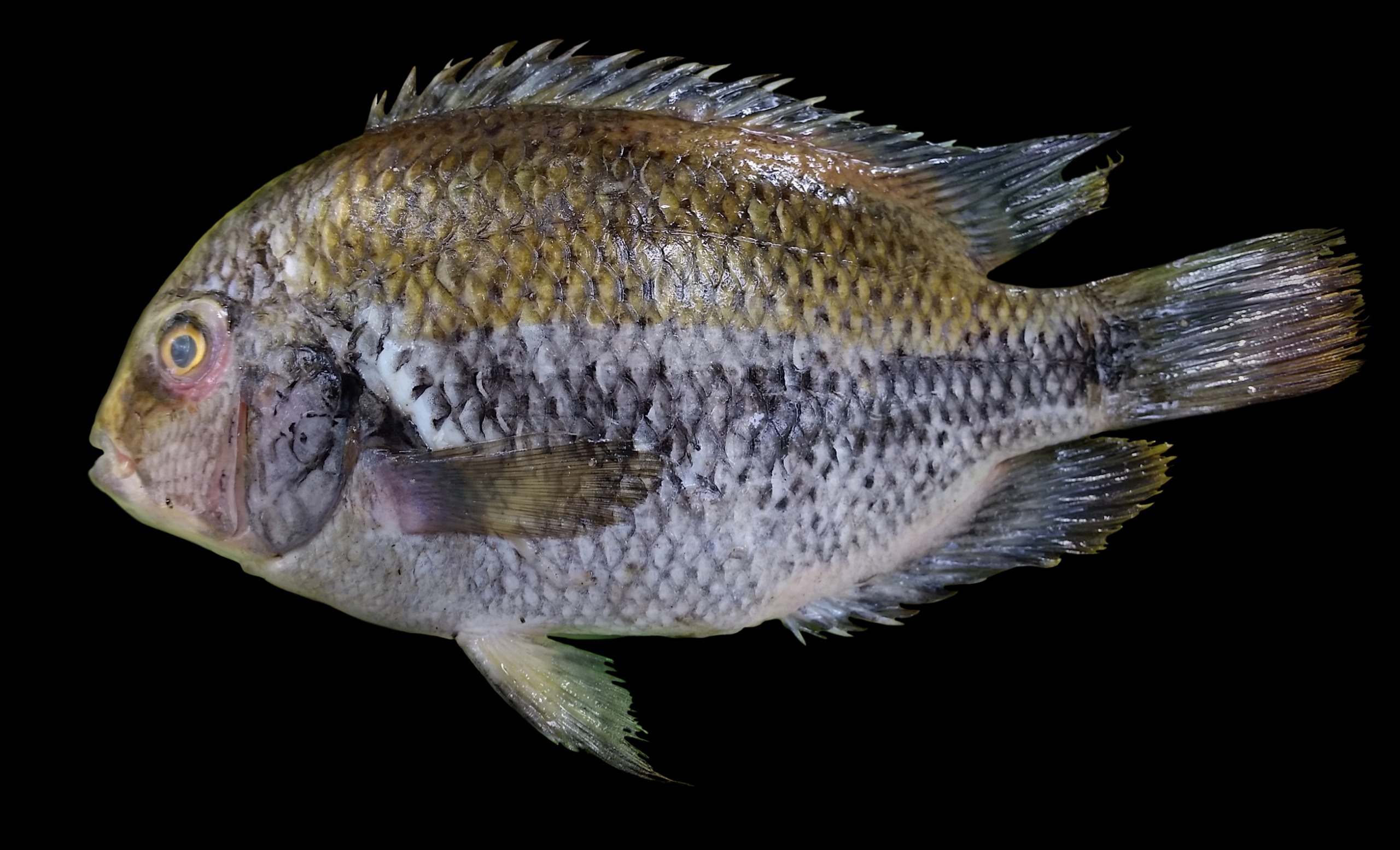 Holotype de Vieja coatlicue sp. Nov. (taille adulte 326.7 mm) capturé dans le rio Uxpanapa, Veracruz, Mexique